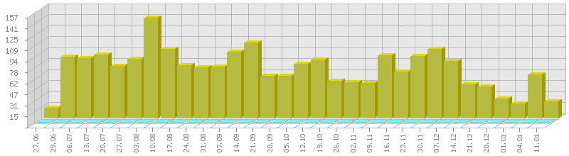 (ბოლო 1 წელი, კვირის ჯამური მაჩვენებლის მიხედვით)