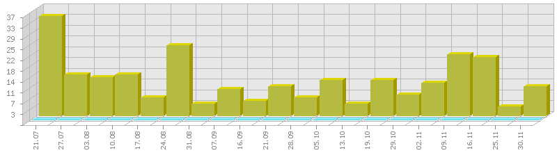 (ბოლო 1 წელი, კვირის ჯამური მაჩვენებლის მიხედვით)