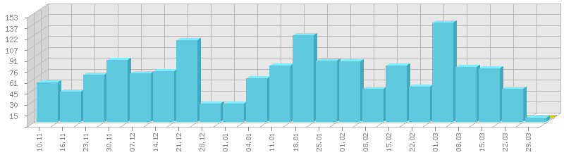 (ბოლო 1 წელი, კვირის ჯამური მაჩვენებლის მიხედვით)