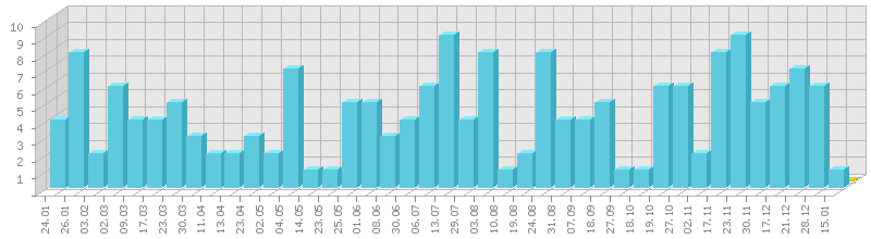სტატისტიკა დღეების მიხედვით:     ან ბოლო დღის სტატისტიკა