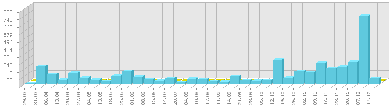 (ბოლო 1 წელი, კვირის ჯამური მაჩვენებლის მიხედვით)