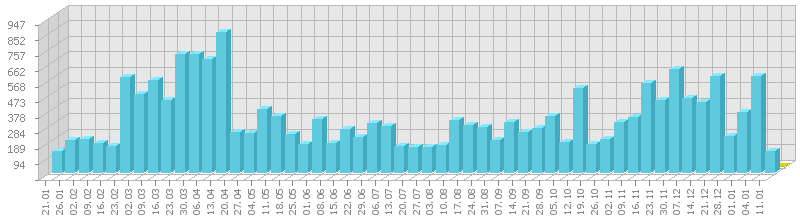 სტატისტიკა დღეების მიხედვით:     ან ბოლო დღის სტატისტიკა