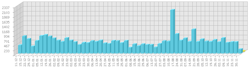 სტატისტიკა დღეების მიხედვით:     ან ბოლო დღის სტატისტიკა