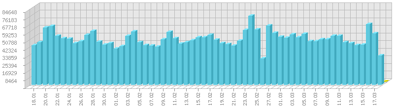 გუშინ: ჰიტები: 56,669 » უნიკალური ვიზიტორები: 26,610, მათ შორის დაბრუნებული 6,650 (24.99%)