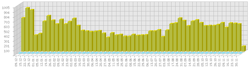 (ბოლო 1 წელი, კვირის ჯამური მაჩვენებლის მიხედვით)