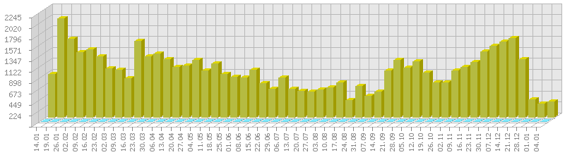 (ბოლო 1 წელი, კვირის ჯამური მაჩვენებლის მიხედვით)