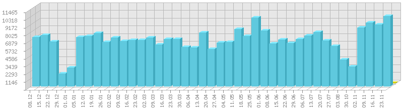 სტატისტიკა დღეების მიხედვით:     ან ბოლო დღის სტატისტიკა