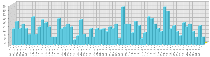 სტატისტიკა დღეების მიხედვით:     ან ბოლო დღის სტატისტიკა