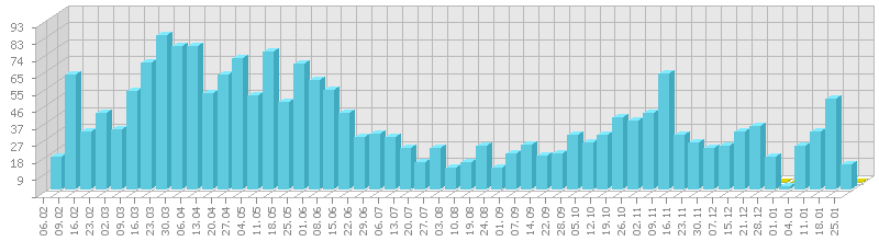 (ბოლო 1 წელი, კვირის ჯამური მაჩვენებლის მიხედვით)