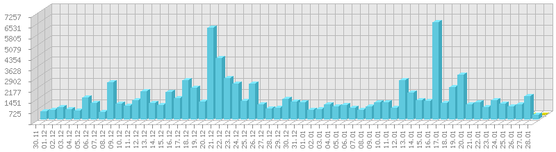 სტატისტიკა დღეების მიხედვით:     ან ბოლო დღის სტატისტიკა