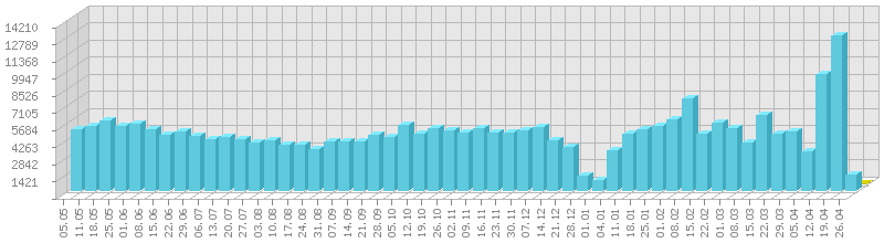 სტატისტიკა დღეების მიხედვით:     ან ბოლო დღის სტატისტიკა