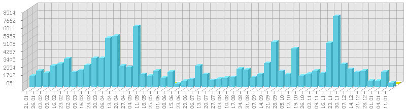 სტატისტიკა დღეების მიხედვით:     ან ბოლო დღის სტატისტიკა