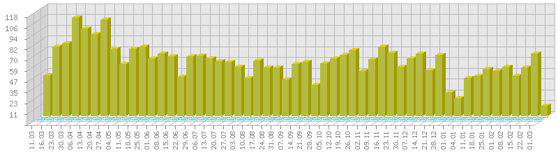 (ბოლო 1 წელი, კვირის ჯამური მაჩვენებლის მიხედვით)