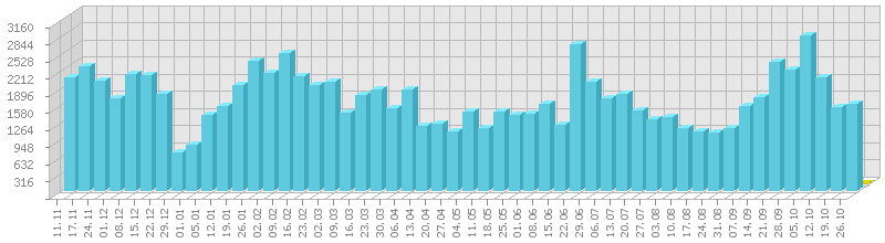 სტატისტიკა დღეების მიხედვით:     ან ბოლო დღის სტატისტიკა