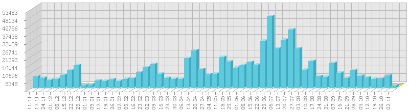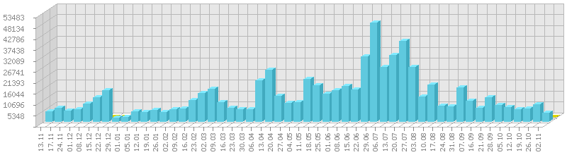სტატისტიკა დღეების მიხედვით:     ან ბოლო დღის სტატისტიკა