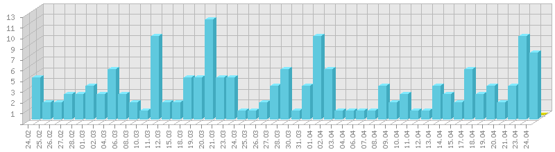 სტატისტიკა დღეების მიხედვით:     ან ბოლო დღის სტატისტიკა