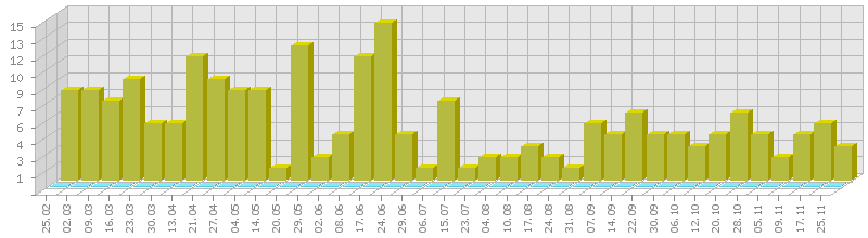 (ბოლო 1 წელი, კვირის ჯამური მაჩვენებლის მიხედვით)