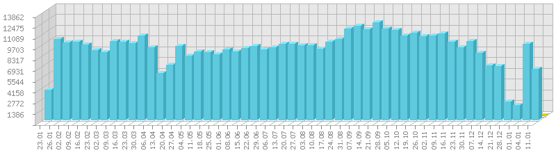 სტატისტიკა დღეების მიხედვით:     ან ბოლო დღის სტატისტიკა